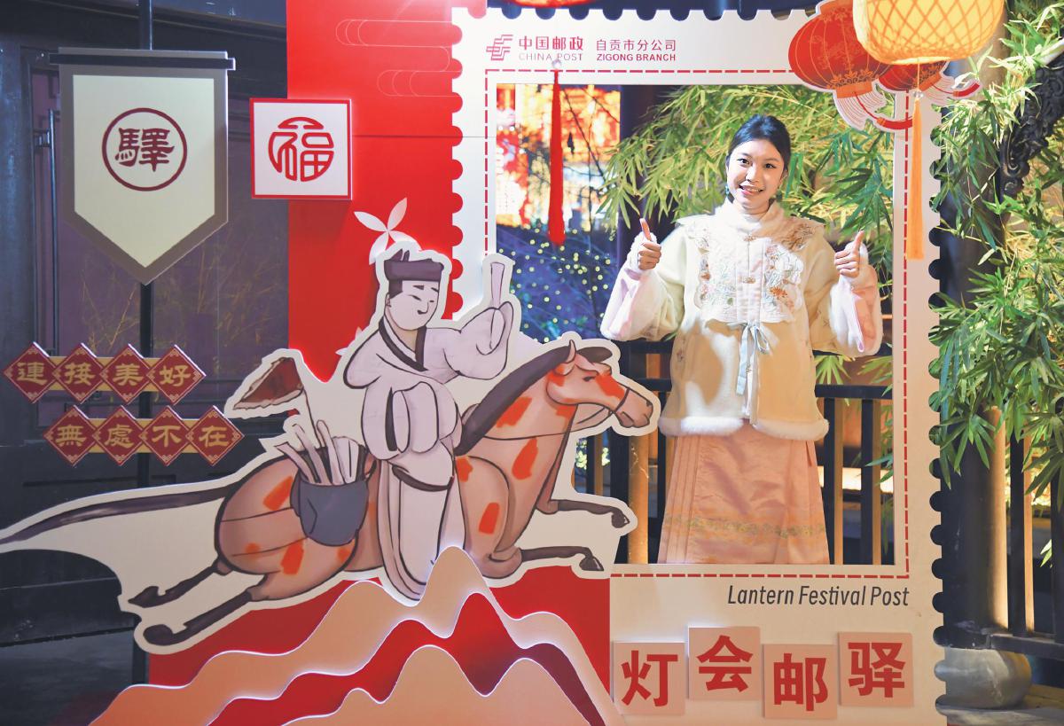 1月17日,四川省自貢市第31屆自貢國(guó)際恐龍燈會(huì)正式開幕。五彩斑斕的燈光交織輝映,勾勒出如夢(mèng)似幻的奇妙景致。璀璨燈海中,全新亮相的彩燈郵驛別具一格,精心規(guī)劃了集郵、文創(chuàng)產(chǎn)品、明信片、特色風(fēng)景戳加蓋、自貢特色冷吃系列美食以及郵寄服務(wù)六個(gè)特色專區(qū),為游客呈上一場(chǎng)集文化、美食與便捷服務(wù)于一體的盛宴,成為燈會(huì)的熱門打卡地。