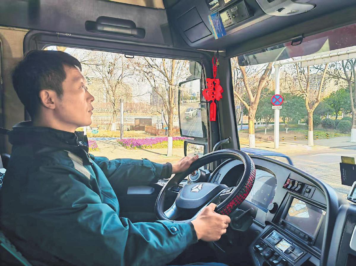 在忙碌中,陳文海會不時掃視一眼掛在駕駛室左側(cè)的“平安?!?,這是家人送給他的?!捌桨哺!睅砹四晡?,也寄托著他70多歲的父母、勤勞持家的妻子、就讀高三的女兒的牽掛,提醒著他注意安全和保重身體。