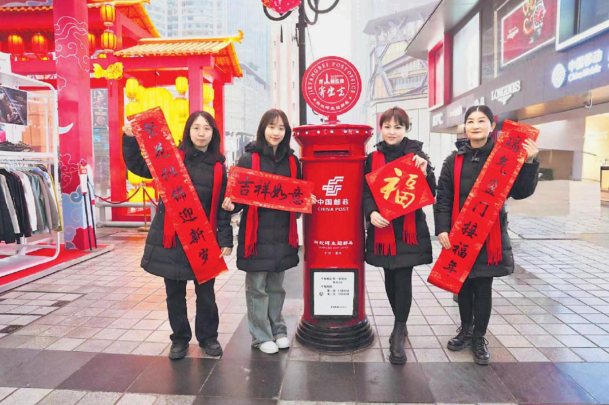新春來臨,重慶市解放碑主題郵局張燈結(jié)彩,紅火的裝飾與整個(gè)商圈的喜慶氛圍相得益彰,向游人們述說著郵政與城市的不解之緣。