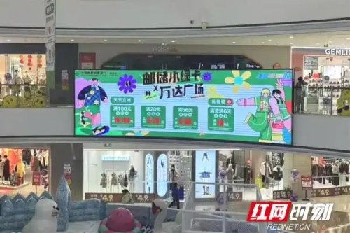 丁女士看到的宣傳是郵儲銀行湖南省分行近期在全省各大知名綜合體商圈,如萬達(dá)、步步高、天虹、友阿等,廣泛開展的“郵儲小綠卡,逛到就省到”的信用卡宣傳活動。此次活動是該分行積極響應(yīng)國家促消費、擴(kuò)內(nèi)需號召,深度融合銀行文化特色,通過綜合體內(nèi)外的LED電子屏、大型吊幔、側(cè)旗、水晶立牌等多種媒介,進(jìn)行滿減活動宣傳,旨在為客戶帶來全新的生活消費體驗。