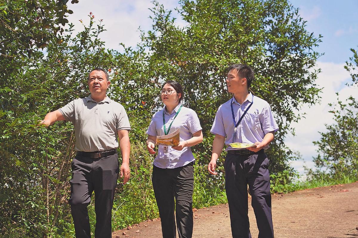 梅州市分行信貸員跟隨客戶查看農(nóng)作物生長情況。