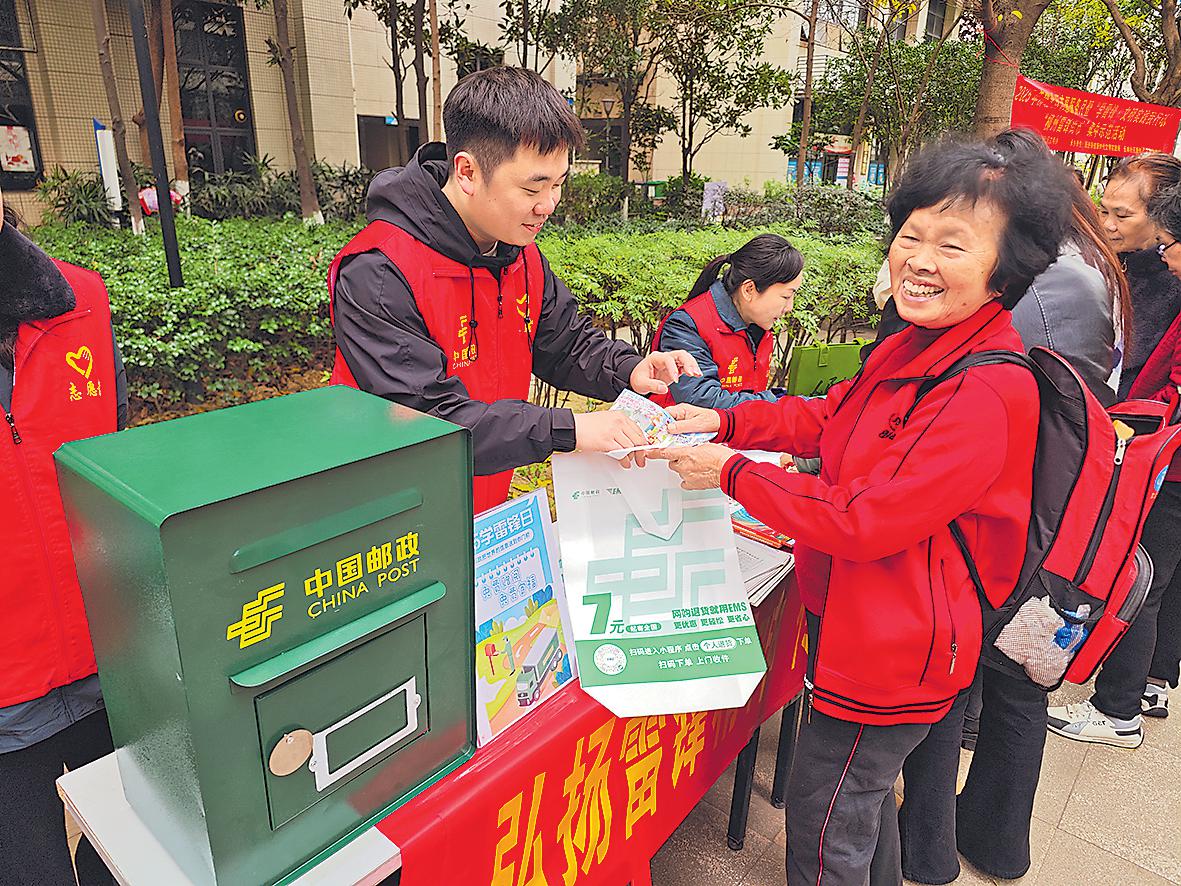 3月4日,廣西壯族自治區(qū)柳州市郵政分公司參加了在長(zhǎng)林社區(qū)冠亞尚成國(guó)際小區(qū)舉行的學(xué)雷鋒志愿服務(wù)活動(dòng)。當(dāng)天,柳州市分公司設(shè)立了專門的服務(wù)攤位,為附近的居民贈(zèng)閱報(bào)刊和免費(fèi)郵寄明信片,吸引了眾多居民前往參與。□鐘業(yè)榮 攝影報(bào)道