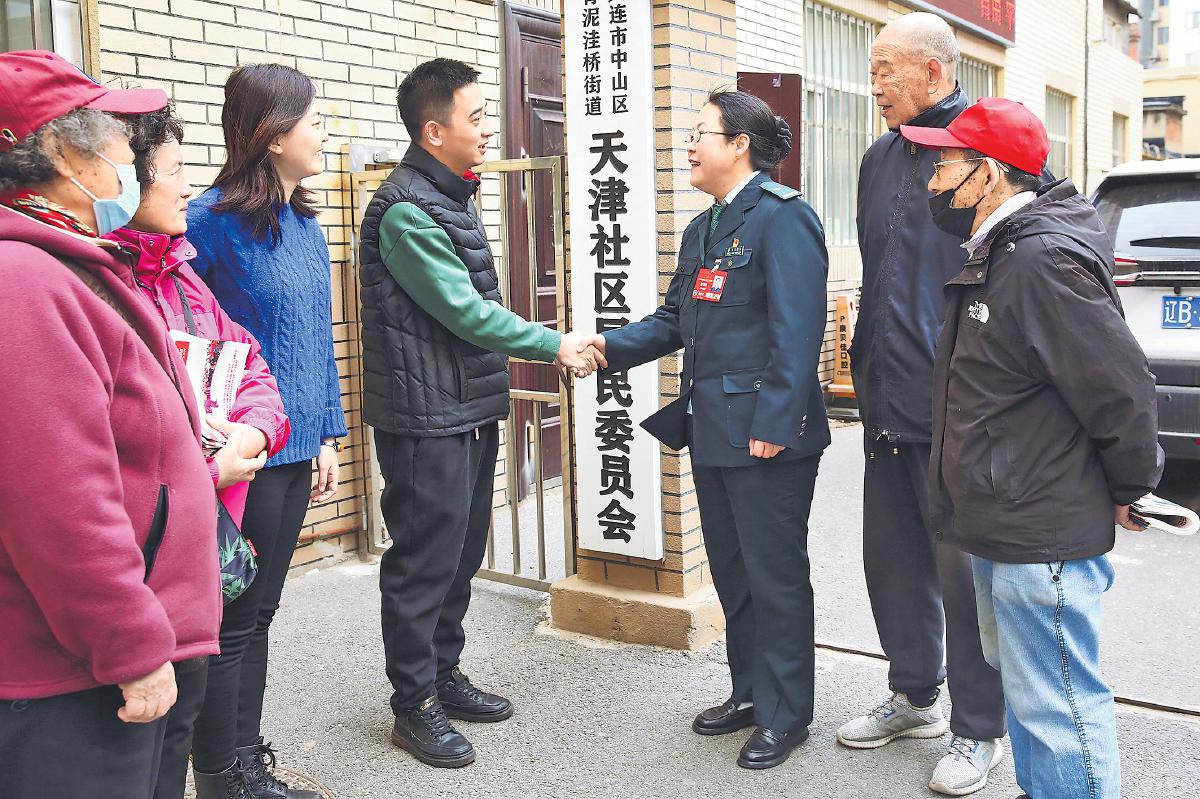 全國人大代表、遼寧省大連市中山區(qū)郵政分公司寄遞事業(yè)部勝利橋普郵營業(yè)部站長趙明枝第一時間來到社區(qū)進行走訪,并向居民宣講全國兩會精神,與大家分享參會體會?! 蹩嚎〗堋悦鳌z