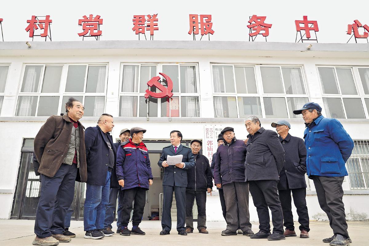 全國人大代表、江蘇省宿遷市泗洪縣郵政分公司歸仁支局局長殷勇向當?shù)厝罕娦v全國兩會精神。 □柏濱豐 張成 攝