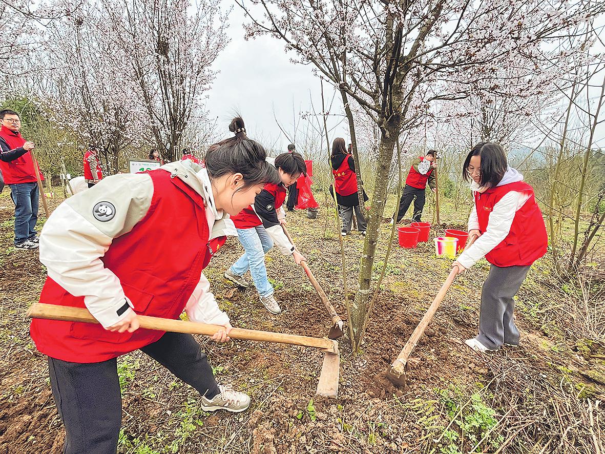 活動現(xiàn)場,“紅馬甲”個個熱情高漲。大家分工明確,配合默契,有的揮鍬鏟土,有的扶苗培土,有的提水澆灌,干勁滿滿。經(jīng)過1小時的努力,大家共栽種枇杷樹苗12株。開展此次植樹活動,不僅為略陽增添了一抹清新綠意,美化了環(huán)境,也讓綠色發(fā)展理念深入人心,切實增強了大家的環(huán)保意識?!趵顫崱z影報道