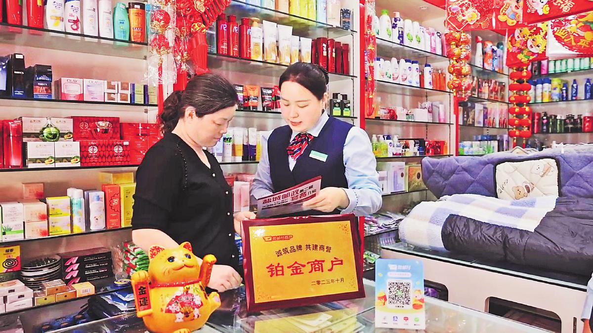 鹽城市分公司員工在網(wǎng)點(diǎn)周邊了解商貿(mào)客戶需求?!鯊埐汀z
