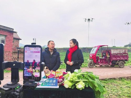 重慶涪陵片區(qū)分公司運(yùn)用“無(wú)人機(jī)運(yùn)輸+網(wǎng)絡(luò)直播”讓青菜頭搭上“云快車”?! 鯖r茂潔 攝