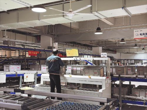 郵政智能倉實(shí)現(xiàn)電商件自動(dòng)揀選操作。