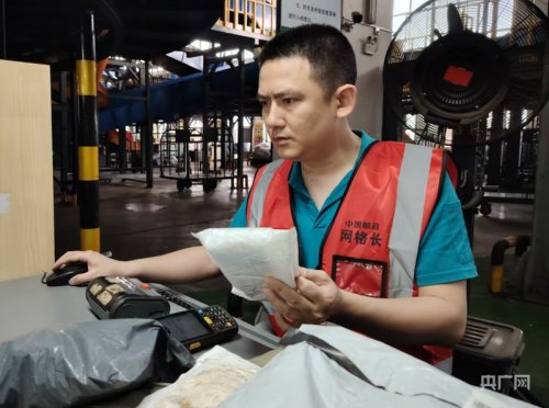 毛自學(xué)在海口國際郵件交換站處理國際郵件(央廣網(wǎng)記者 付美斌 攝)
