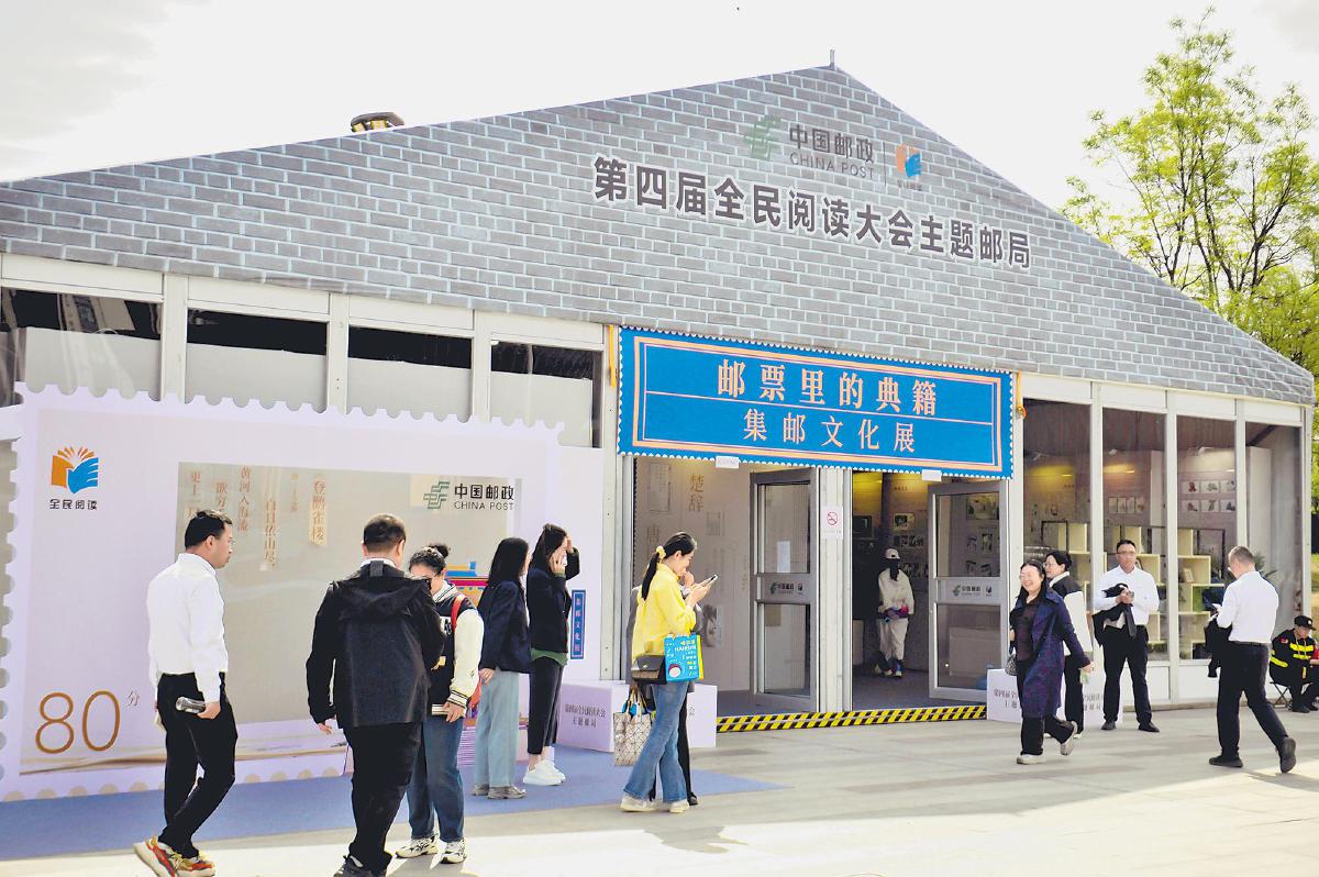 4月23日至27日,由中央宣傳部和山西省委、省政府主辦的第四屆全民閱讀大會在太原舉辦。山西省郵政分公司舉辦了《郵票里的典籍》專題集郵文化展覽,并啟用“第四屆全民閱讀大會”文化日戳1枚。太原市郵政分公司在活動現(xiàn)場設(shè)立臨時主題郵局,集中展示各類暢銷報刊及集郵文創(chuàng)產(chǎn)品,并免費提供“第四屆全民閱讀大會”文化日戳和幾十枚地方名勝風(fēng)光打卡章戳的加蓋服務(wù)?!跷鋪喠痢⊥蹩∏濉罴巍z影報道