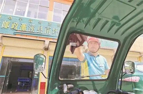 近日,中國郵政集團有限公司安徽省濉溪縣分公司南坪鎮(zhèn)級運營中心鄉(xiāng)郵投遞員、全國勞模劉雷鋒在清潔車輛,準備出發(fā)。