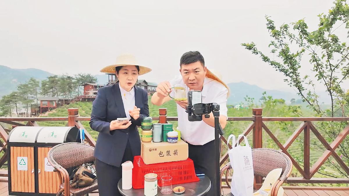 河南郵政直播團(tuán)隊(duì)進(jìn)行信陽(yáng)毛尖全省聯(lián)動(dòng)直播。 □圖片由信陽(yáng)郵政提供