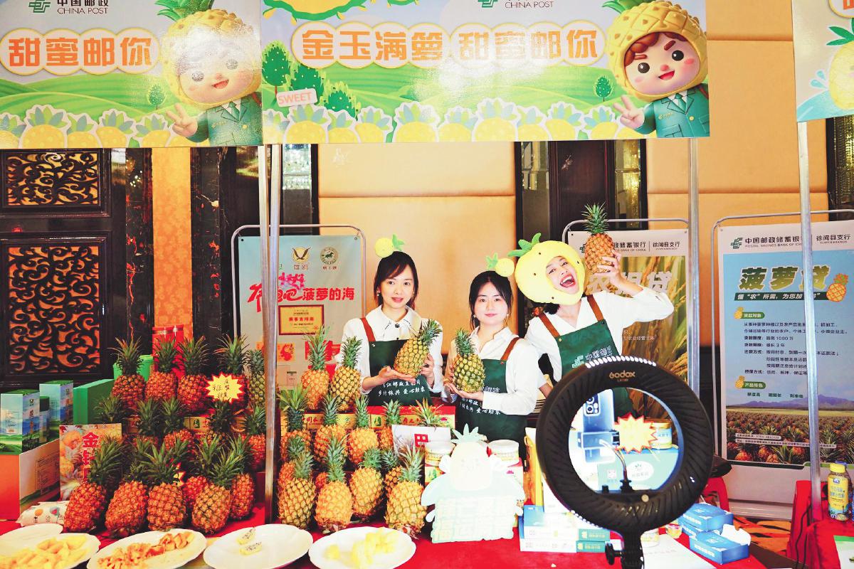 4月10日,湛江市分公司聯(lián)合徐聞縣政府、湛江市農(nóng)業(yè)農(nóng)村局、國家金融監(jiān)督管理總局湛江監(jiān)管分局、湛江市郵政管理局等單位,在徐聞舉辦了以“紅土育菠蘿,產(chǎn)業(yè)促振興”為主題的2025徐聞菠蘿(鳳梨)推介會。徐聞縣分公司與重慶果批市場、新疆維吾爾自治區(qū)郵政分公司、新疆紅星農(nóng)場等簽訂了采購意向書,采購金額達(dá)500萬元。