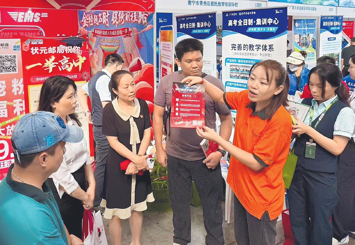 近日,2025年廣西普通高校招生咨詢會在南寧市國際會展中心舉行。南寧郵政以“固定展位+流動宣傳”的方式,為考生及家長講解高考錄取通知書的查詢流程,并提供郵政寄遞、金融業(yè)務(wù)咨詢和文創(chuàng)產(chǎn)品展銷等服務(wù)?;顒又?,郵政工作人員耐心解答每位咨詢者的問題,并詳細記錄需求信息,將實行后續(xù)跟蹤服務(wù)。
