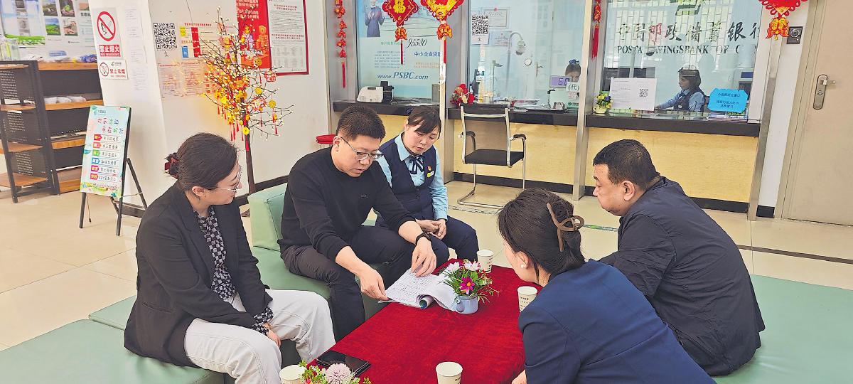 張育琪(左二)在基層網(wǎng)點調(diào)研指導(dǎo)工作。
