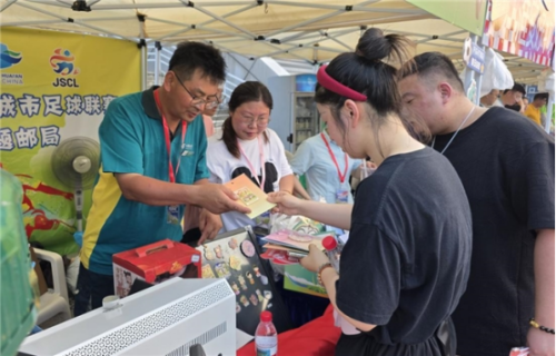7月6日,江蘇足球超級(jí)聯(lián)賽(簡稱“蘇超”)淮安對陣常州的焦點(diǎn)之戰(zhàn)在淮安體育中心激情上演?;窗彩朽]政分公司把握賽事機(jī)遇,深化專業(yè)協(xié)同,以特色文創(chuàng)產(chǎn)品為切入點(diǎn),深度融入體育盛會(huì),為賽事提供郵政專屬的綜合服務(wù)。