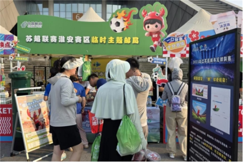 鎖定主場,延伸服務(wù)半徑?;窗侧]政充分發(fā)揮主場優(yōu)勢,成功爭取多個(gè)現(xiàn)場助威名額,在全市范圍內(nèi)策劃開展“郵我來助威,一鉗定勝負(fù)”系列主題活動(dòng)。在郵政網(wǎng)點(diǎn)設(shè)立“蘇超助威區(qū)”,為市民提供賽事直播觀看、文創(chuàng)產(chǎn)品領(lǐng)取等沉浸式互動(dòng)體驗(yàn),有效延伸了服務(wù)觸角。