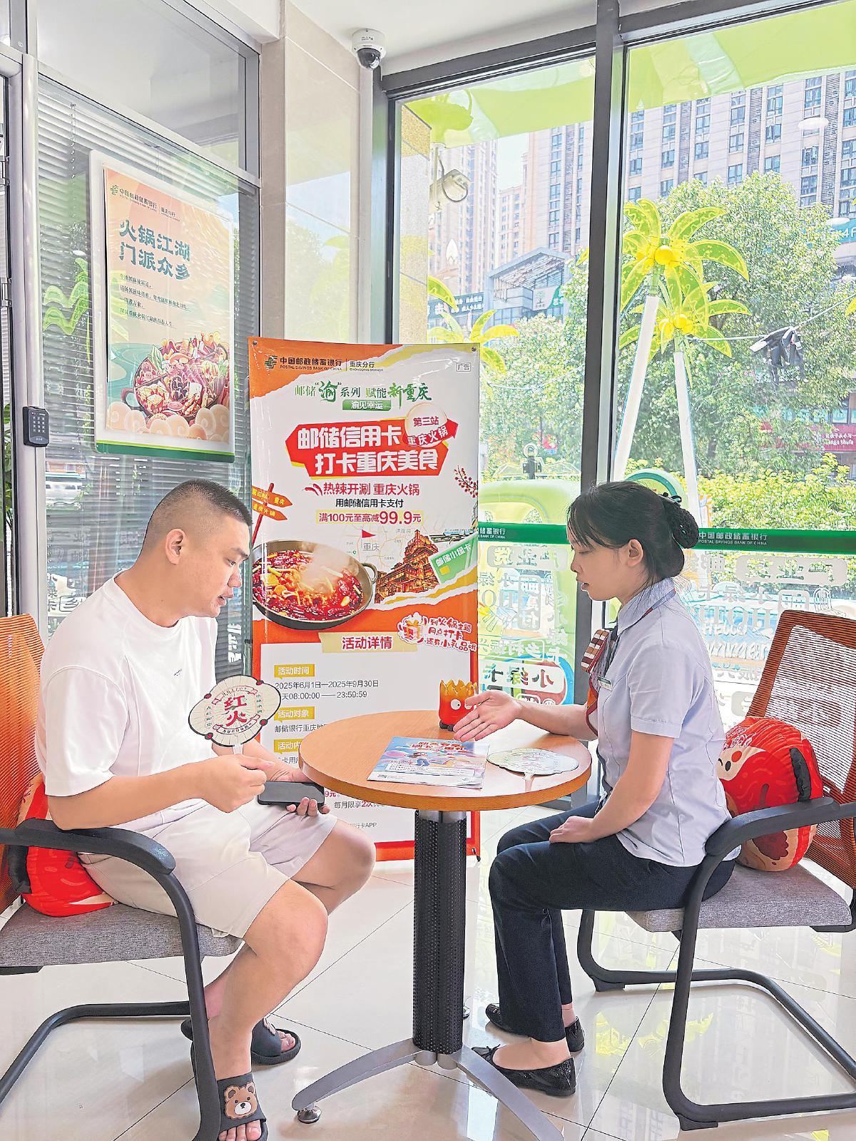 立足產(chǎn)業(yè)特色,該支行還推出了“火鍋產(chǎn)業(yè)貸”,以專業(yè)的金融服務(wù)為當(dāng)?shù)靥厣a(chǎn)業(yè)注入強(qiáng)勁動(dòng)力。同時(shí),該支行積極聯(lián)系網(wǎng)點(diǎn)周邊火鍋商戶,推出了信用卡立減活動(dòng)?!罢娴氖翘珓澦懔耍覀兗腋浇芏嗷疱伒甓寄芟硎茑]儲(chǔ)銀行信用卡的優(yōu)惠。外地的朋友們暑期來(lái)重慶旅游,我都要帶他們嘗嘗地道的火鍋?!笨蛻敉跖块_(kāi)心地說(shuō)道。