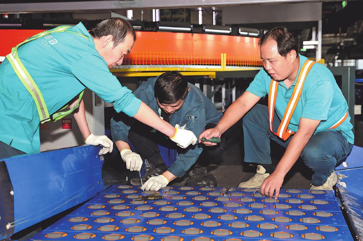 “雙11”生產(chǎn)旺季來(lái)臨,北京郵區(qū)中心主動(dòng)出擊,創(chuàng)新推出“搭班作業(yè)”模式,對(duì)生產(chǎn)現(xiàn)場(chǎng)的21套矩陣分揀機(jī)關(guān)鍵擺輪系統(tǒng)進(jìn)行集中改造與升級(jí),以“技術(shù)+管理”雙輪驅(qū)動(dòng),全面筑牢生產(chǎn)保障線,迎接旺季高峰。