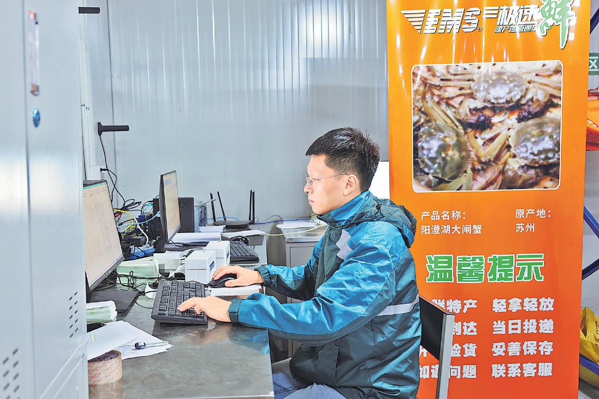 今年,江蘇郵政靈活調(diào)控前置場地作業(yè)時間,持續(xù)優(yōu)化前置營運中心,為陽澄湖大閘蟹寄遞運營提供了全方位保障:采用“錯峰出行”策略,強化大閘蟹運輸及倉儲保障;加密投遞頻次、延長攬收時間,實現(xiàn)全國257個主要城市次日遞或隔日遞;為蟹農(nóng)提供全天候服務(wù),進一步提升了應(yīng)對處理效能。