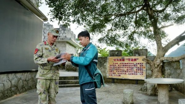 采訪組隨黃河振沿盤山公路蜿蜒而上,塌方痕跡尚在,山勢依舊峻峭。拐過十幾道彎,那坡縣天池國防民兵哨所的輪廓漸漸清晰。62歲的哨長凌尚前早已等在門口。這位堅守邊境44年的“活界碑”,與郵政有著特殊的情緣。
