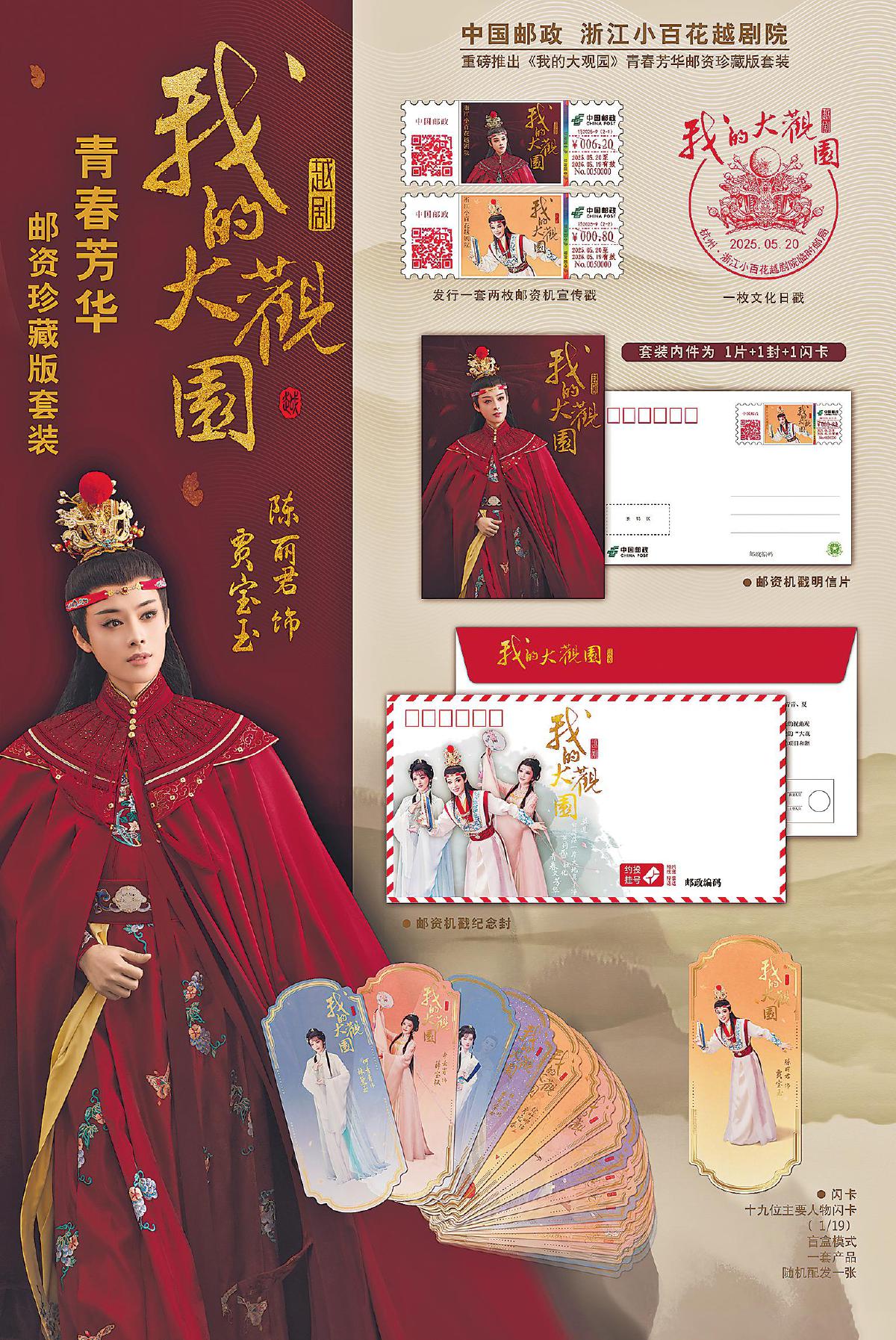 “在和浙江小百花越劇院溝通時,我們圍繞《我的大觀園》進行產(chǎn)品的創(chuàng)新設計:以主角形象為核心元素打造系列封片產(chǎn)品,并將19位主要演員的風采制成收藏級閃卡。這份寄給廣大戲迷的獨特禮物,兼具文化傳播與文創(chuàng)收藏價值,讓越劇之美觸手可及。這一創(chuàng)意得到浙江小百花越劇院的認可。他們覺得這對于這部劇的宣傳以及對于越劇文化的傳播都是非常有益的。”浙江省分公司郵政業(yè)務部函包業(yè)務室主任陳志皓介紹道。