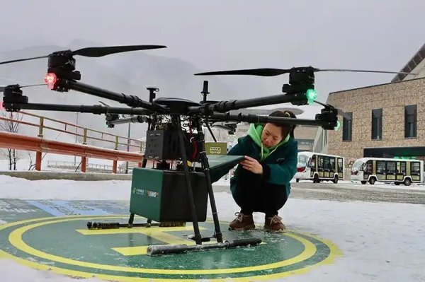 “郵件裝載完畢,已完成起飛前檢查,可以正常起飛!” 隨著指令下達(dá),這架搭載著快遞與報(bào)刊的“空中快遞員”騰空而起,沿云控3D航線(xiàn)向7公里外的冬奧村疾馳而去。14分鐘后,無(wú)人機(jī)精準(zhǔn)降落,在皚皚白雪中為山區(qū)打通了高效便捷的“空中郵路”。