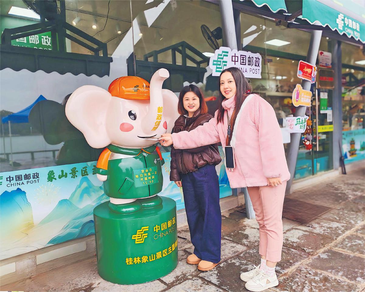 廣西壯族自治區(qū)桂林市郵政分公司在象山景區(qū)主題郵局舉辦首發(fā)活動,免費為市民、游客提供生肖紀念戳加蓋服務(wù)。圖為游客將蓋好戳的明信片投入郵筒寄出?!跆扑仄肌↑S賢明 攝影報道