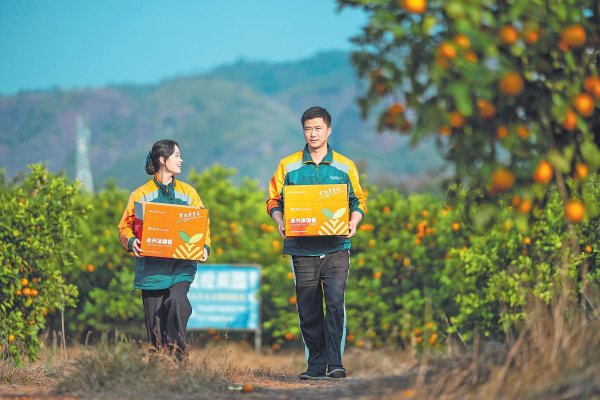 郵政員工把“最后一百米”縮短到零——走進(jìn)果農(nóng)院落,將剛離枝頭的冰糖橙直接裝車,家門口即刻變“始發(fā)站”。