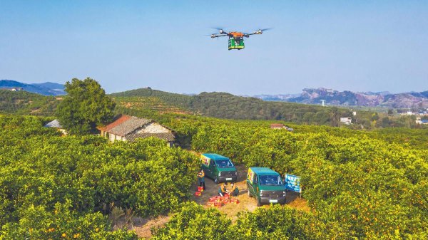 無人機(jī)騰空而起,30分鐘“閃送”枝頭鮮橙直達(dá)郵件處理中心。