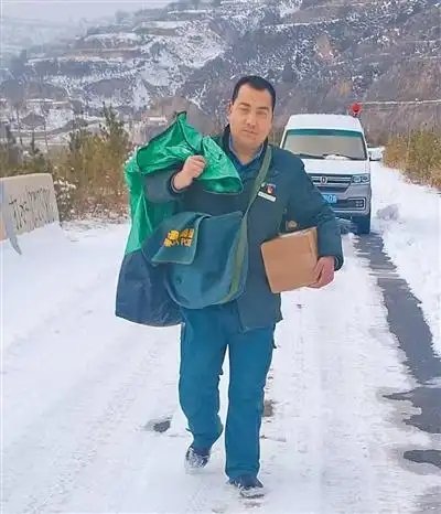 “今天下雪,車最多開到半山腰,后面的路還得靠腿走,所以得早點(diǎn)出發(fā)?!壁w元瑞說著發(fā)動了車。作為鎮(zhèn)里的郵遞員,趙元瑞幾乎天天在溝壑縱橫、山路起伏的山梁間往返,這一條條熟悉的郵路,他已經(jīng)走了20多年。10多個行政村、上百個自然村,哪段路不好走,哪戶人家常年在家,他心里都有數(shù)。