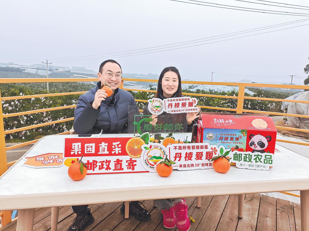 “眉好郵你”團(tuán)隊(duì)通過電商直播助銷丹棱愛媛橙?! 踵u鳳 攝