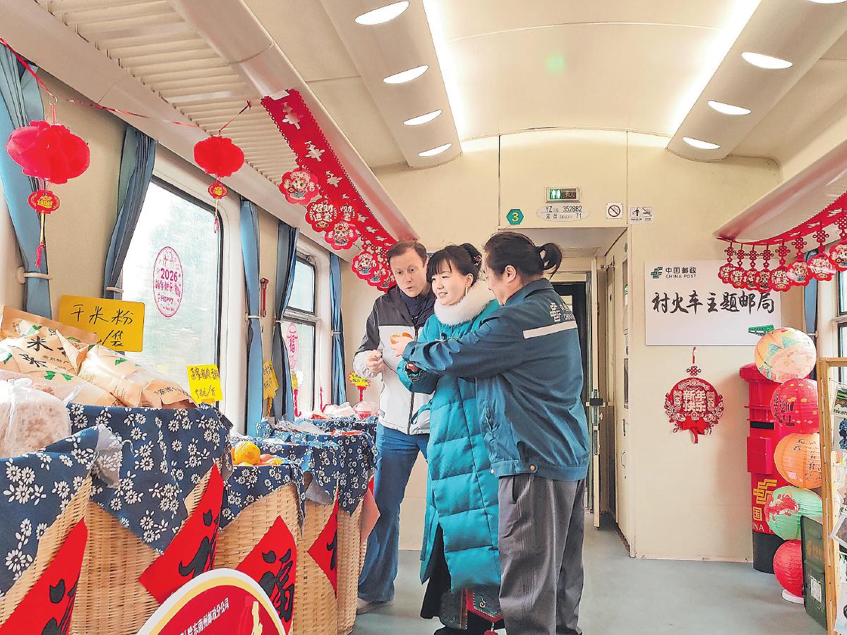 2026年新春,“村火車”迎來“熱鬧中國年·尋味黔東南”“新春年貨鋪”主題活動?!班l(xiāng)村市集”里村民們擺起小攤,“非遺工坊”里繡娘飛針走線,“流動展演廳”里身著盛裝的侗族小演員們獻上侗族琵琶彈唱。其間,主題郵局郵味濃濃,成為“村火車”的一抹亮色。