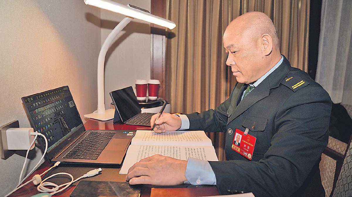 采訪結(jié)束,夜色更深,謝堅又伏案打磨第二天的發(fā)言稿。從伶仃洋上的郵政所到人民大會堂,九年履職,他始終扎根基層、為民發(fā)聲,用一份份務實建議,書寫著人大代表的責任與擔當。