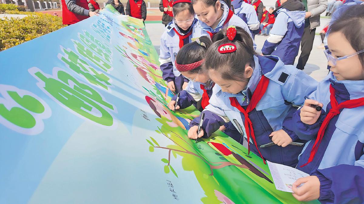 江蘇省南通市海門區(qū)郵政分公司聯(lián)合海門街道城北社區(qū)、張謇小學(xué)開展“郵校傳綠意 社區(qū)護(hù)新芽 童心植希望”主題實(shí)踐活動(dòng)。活動(dòng)現(xiàn)場(chǎng),孩子們齊聲宣讀“愛綠護(hù)綠”倡議書,聯(lián)手繪制8米長(zhǎng)“綠色畫卷”,以稚嫩筆觸勾勒青山綠水、鳥語花香的生態(tài)圖景,隨后投出“美麗海門”明信片,將綠色寄語寄往未來?!跬鯕g 攝影報(bào)道
