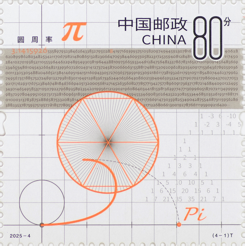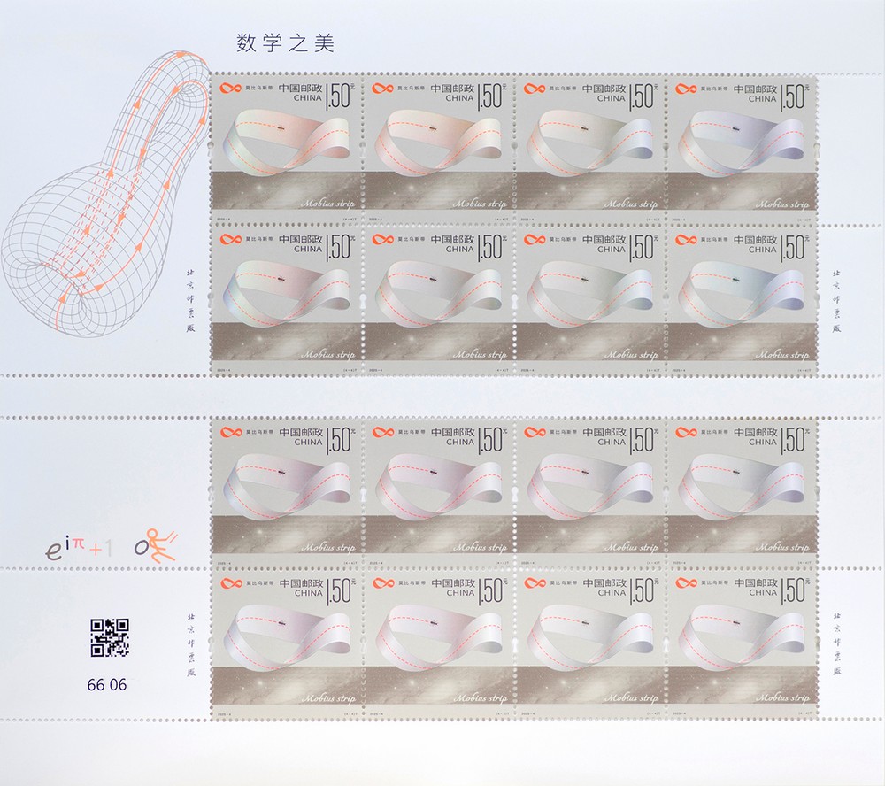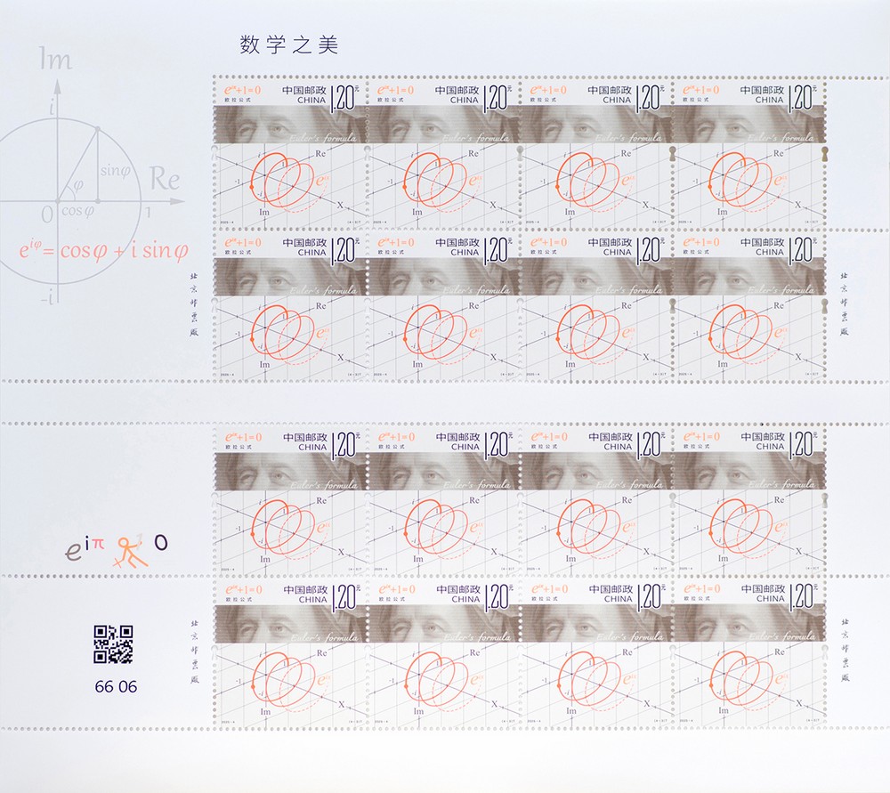 中國(guó)郵政定于2025年3月14日發(fā)行《數(shù)學(xué)之美》特種郵票1套4枚,郵票圖案名稱為:圓周率、勾股定理、歐拉公式、莫比烏斯帶。全套郵票面值4.70元。郵票計(jì)劃發(fā)行數(shù)量為套票625萬套,版式二80萬版。